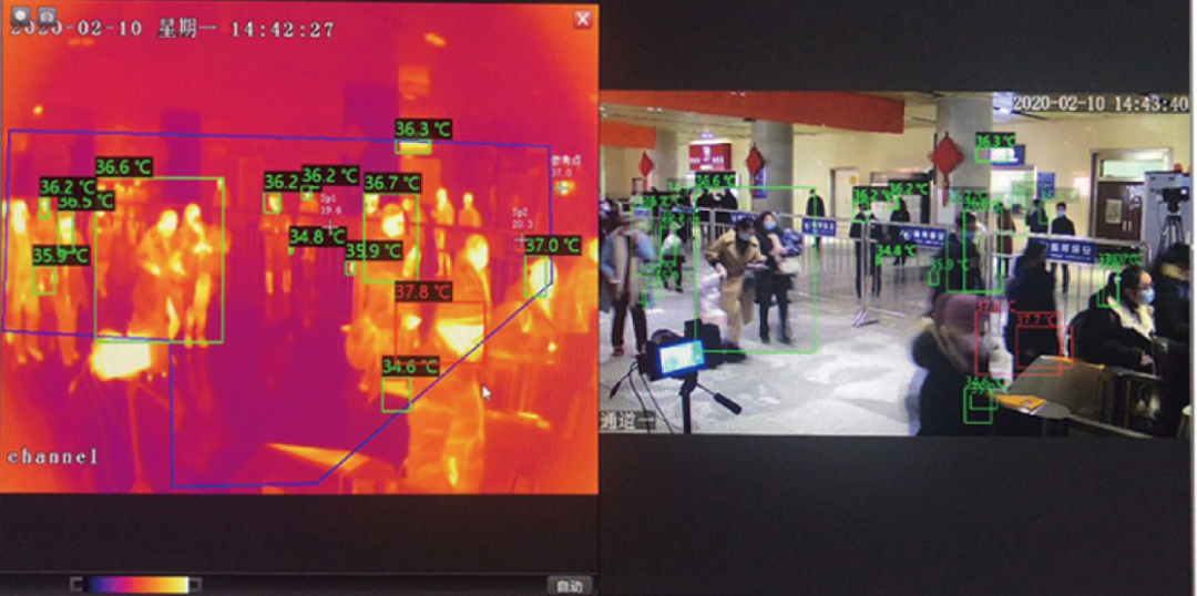 红外测温设备能感应到我们看不见的红外线,把温度转换成数字和图像。比起额温枪等设备,红外测温仪就像是一个庞大军队,使用一台红外热像仪相当于同时使用成千上万台额温枪。举例来说,一台分辨率为160×120的热成像仪,一次能读取19200个点的温度,相当于一万多个额温枪在同时工作。